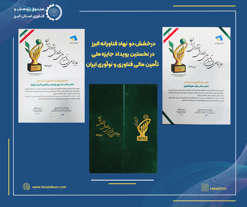 درخشش دو نهاد فناورانه البرز در نخستین رویداد جایزه ملی تأمین مالی فناوری و نوآوری ایران